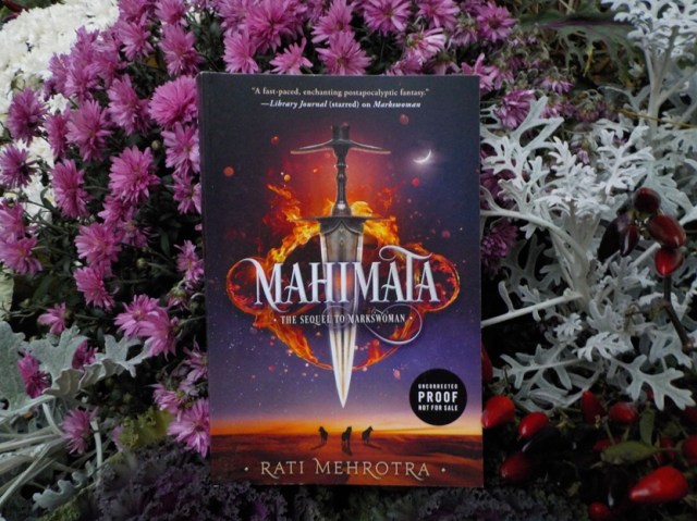 Just to say that the ARCs of MAHIMATA have arrived, and they’re gorgeous! I am usually terrible with taking pictures, but with this cover I just could not go wrong. This photo is taken just outside the building where I live. Yes, we still have flowers in November in Toronto. Aren’t they pretty? Not as pretty as my book, heh.