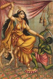 No, she’s not really called “The Vanquisher”, but it is apt. She is a goddess of great occult power, who smashes her devotees’ misconceptions with her cudgel, who paralyses and silences her enemies. She is often depicted beating a demon with a cudgel in her right hand, while she pulls out his tongue with her left hand, denoting the ability to stun or paralyze an enemy into silence.