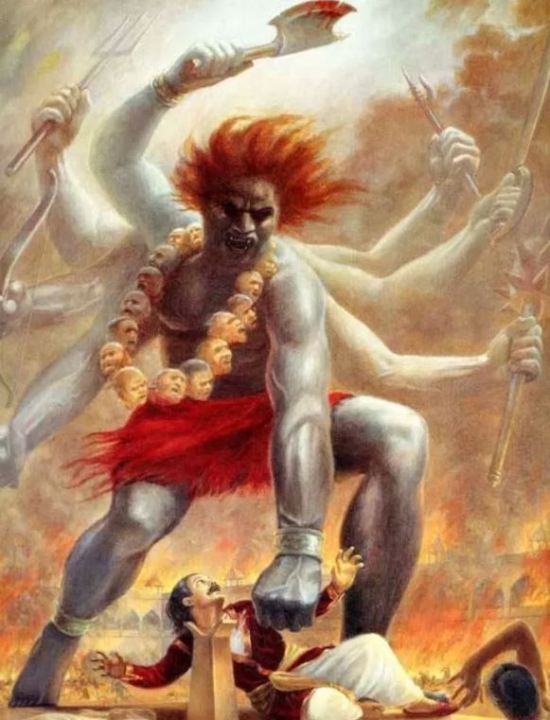 Prajapati Daksha, the world king and son of Brahma, was beheaded by Shiva for driving his daughter Sati to immolate herself. It’s a long, tragic story. Daksha never wanted Sati to marry Shiva, even though he knew Sati was an incarnation of Adishakti herself, Shiva’s feminine half. He agreed to their marriage only with greatest reluctance, since he loathed Shiva. Once, he planned a very important yajna and invited everyone except Shiva and Sati. Overcome with misplaced filial love, Sati decided to attend the yajna without Shiva. When she arrived at her father’s palace, he insulted her and Shiva. Overcome with rage and humiliation, she cursed him and cast herself into the sacrificial flames. Daksha = Worst Parent Ever. When Shiva learned what happened, he was enraged. He cast two locks of hair on the ground which turned into his avatars Veerbhadra and Bhadrakali, and instructed them to kill Daksha.